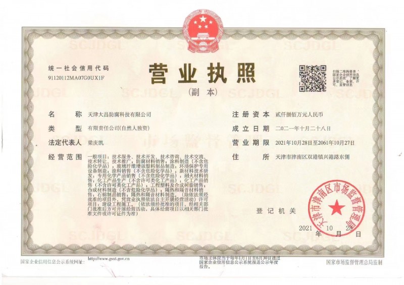 | 發(fā)證機(jī)構(gòu): | 天津市津南區(qū)市場監(jiān)督管理局 | 發(fā)證時間 : | 2021-10-28 |