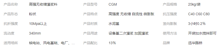 遠華牌 機械設備無墊安裝 水泥基二次高強灌漿料 H-80型