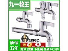 全銅洗衣機水龍頭4分加長快開龍頭一進二出接頭自來水拖把池龍頭